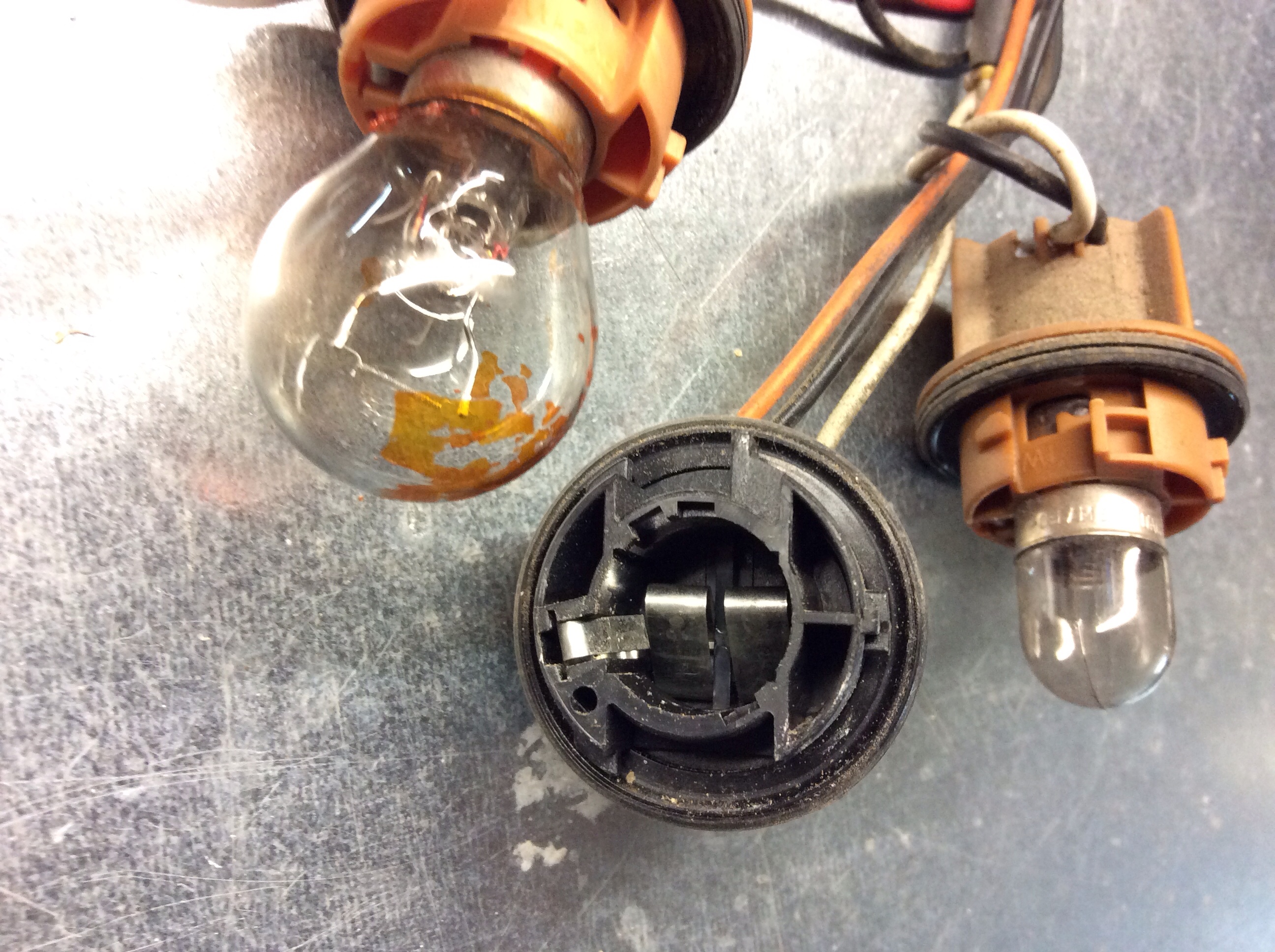 A cause de la fameuse infiltration d'eau dans le feu arrière, 2 pattes métalliques ont cassé dans 2 cosses d'ampoules du feu arrière droit.