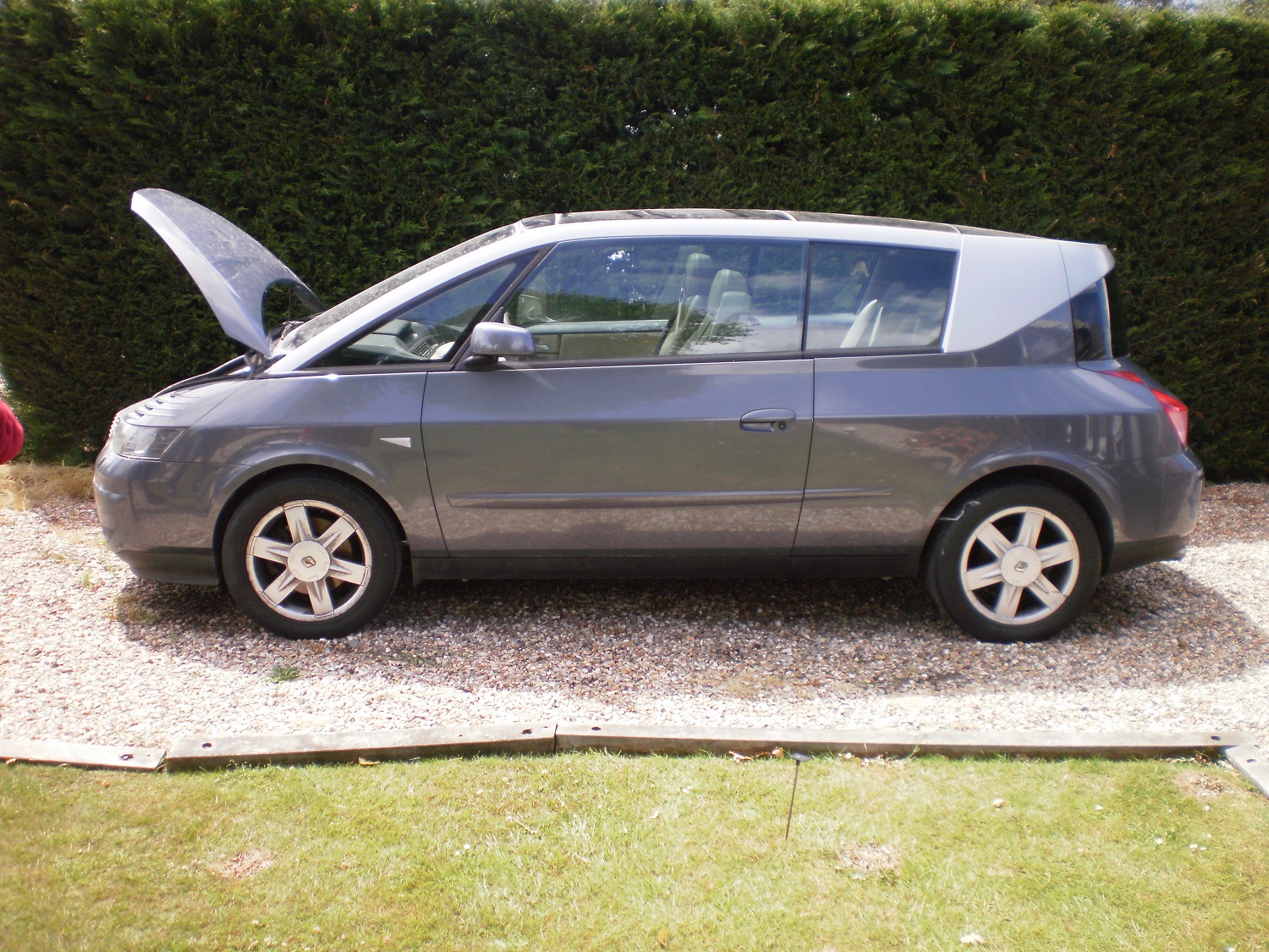 Récemment mon contrôleur technique m’appelle pour me communiquer l'adresse d'une personne voulant se séparer d'une avantime V6 qui l'encombre. Comme le premier, je n'en cherchais pas un second mais allons voir pourquoi pas. Arrivé sur place, un V6 gris acier privilège qui n'aurait pas bougé depuis plus de 8 mois attend sagement qu'il se passe quelque chose. Au début j'étais un peu retissant, pneus HS, ciel de toit et intérieur un peu moisi, un feu AR cassé, les vitres avant bloquées en position haute (depuis un matin bien gelé apparemment) et un moteur que je ne peux démarrer puisque batterie HS. En soulevant le bout de moquette qui cache la plaque constructeur je peux lire T000320. Tiens il est petit ce numéro! Première immat le 31 mai 2001 avec numéro dans le 92. Le proprio m'apprend qu'il a acheté cette voiture à Renault en 2003 et qu'elle servait de démonstration à Paris.