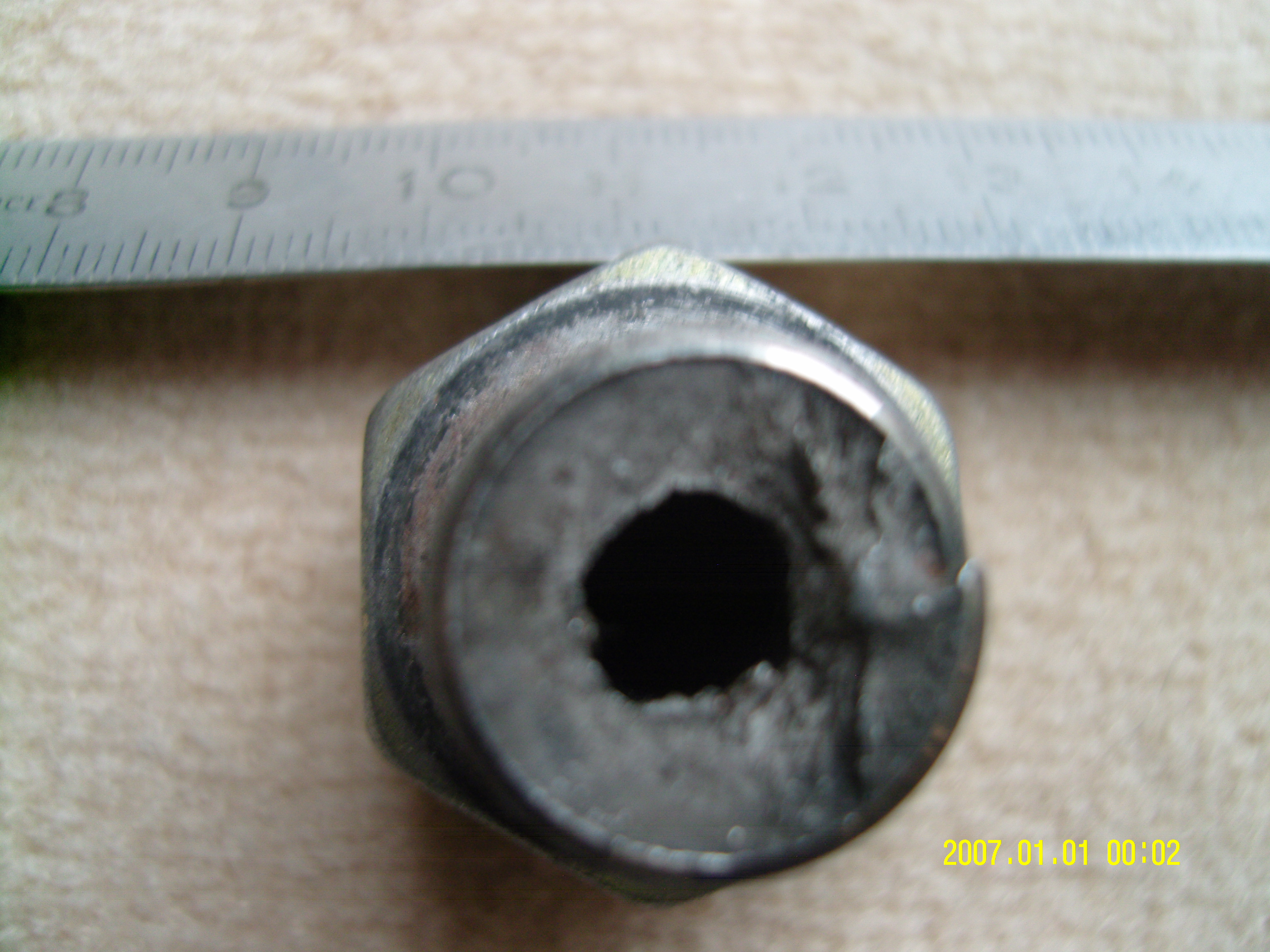 Nota: Le trou que l'on voit , je l'ai réalisé pour extraire le bout de l'écrou avec un extracteur.