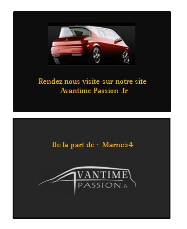 Je ne sais pas créer mais je sais écrire et je verrais bien pour les cartes de visite AP, sur un fond noir, au milieu haut, la photo du proto de dos comme sur le forum et dans le bas, l'inscription pour inviter les propriétaires à rejoindre Avantime Passion.