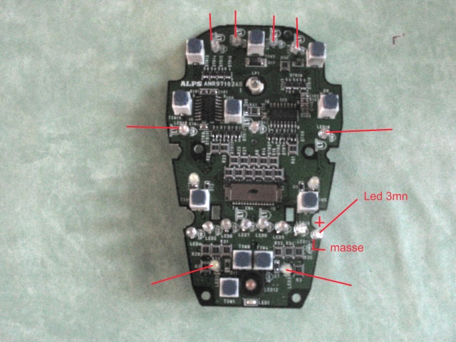 pour la realisation cela fait deja un moment que je l'ai realisé,et toutes les photos ont ete deposé ici.les operations sont realisable pour tous les boutons,il faut remplacer les mini lampes par des led de 3mn bleu avec une resistance de 470 ohms sur la polarité +.