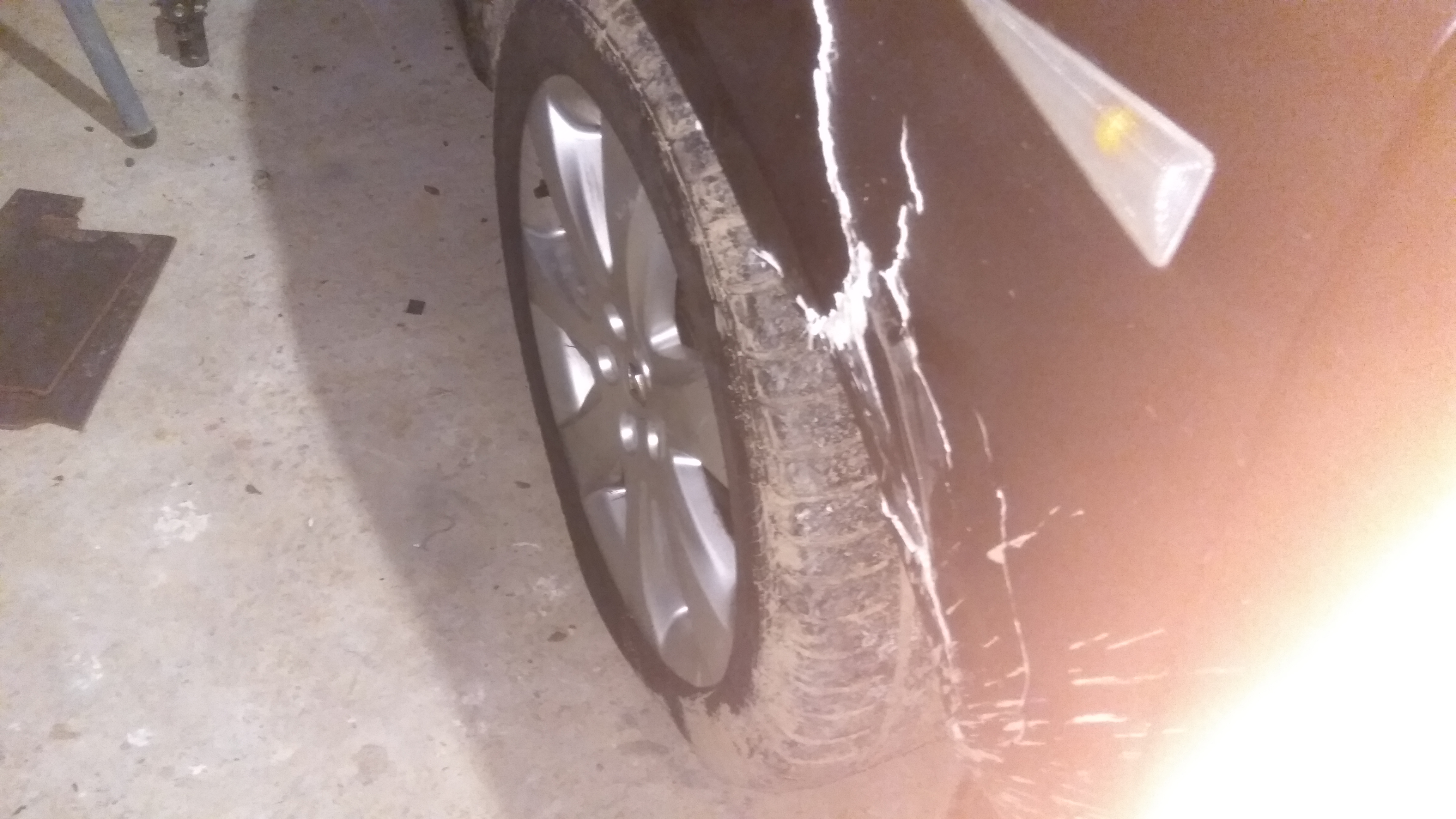 Je prends mon AVT une fois par semaine et samedi je prends pour me balader et le m’arrête chez Leroy merluche pour prendre des pellets et quand le ressort, aile avant gauche déchiré, un couple sur le parking me dit qu'ils ont vu une camionnette reculée de travers et partir un peu vite.