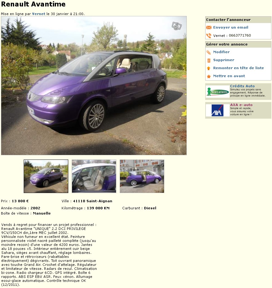 Une nouvelle annonce sur le bon coin avec les clefs et la carte grise et donc, pas comme la précédente !