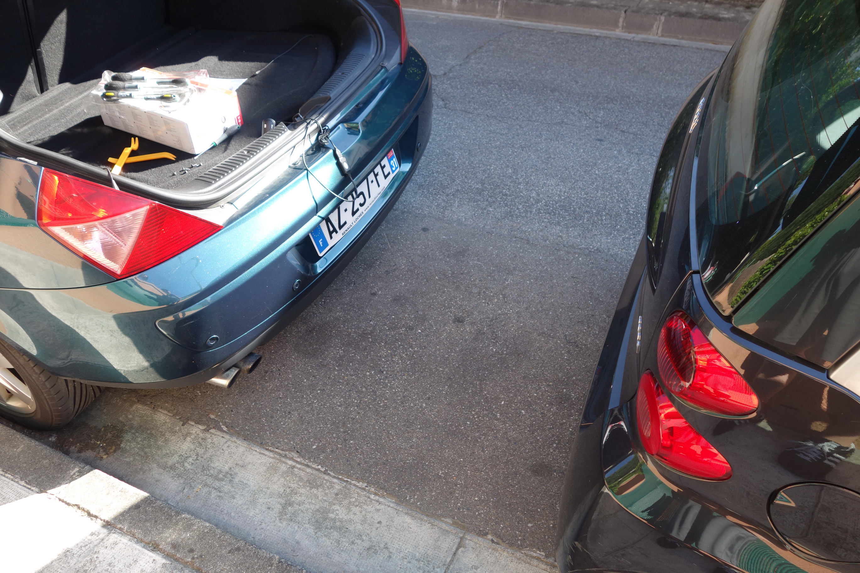 Pour l'intégration, non ça ne va pas être super simple, encore que....On a déjà amené la rallonge USB dans le coffre, maintenant il faut qu'on voit si y'a un trou pour la faire passer vers l'intérieur de la carrosserie (derrière la plaque d'immat)....