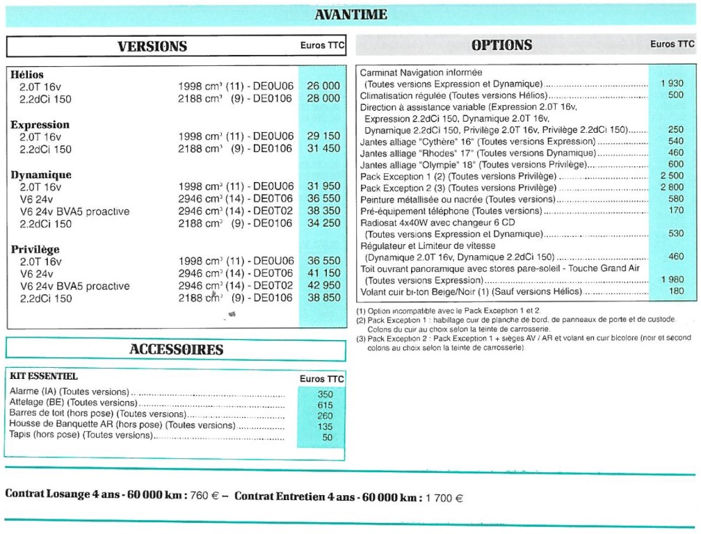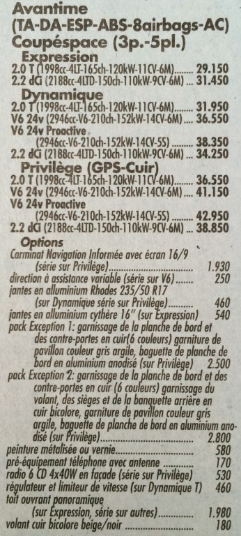 En farfouillant dans mon dossier Avantime, j'ai découvert ce doc que j'ai scanné. Si ca intéresse du monde, je vais essayer de le re-scanner mieux que ça car la je l'ai un peu raté... (2 pages blanches dans le doc).