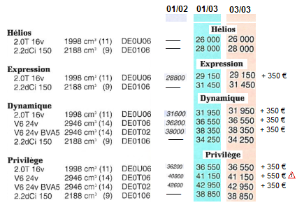 Mise à jour page 1 : l'évolution des tarifs entre Janvier 2002 et Mars 2003