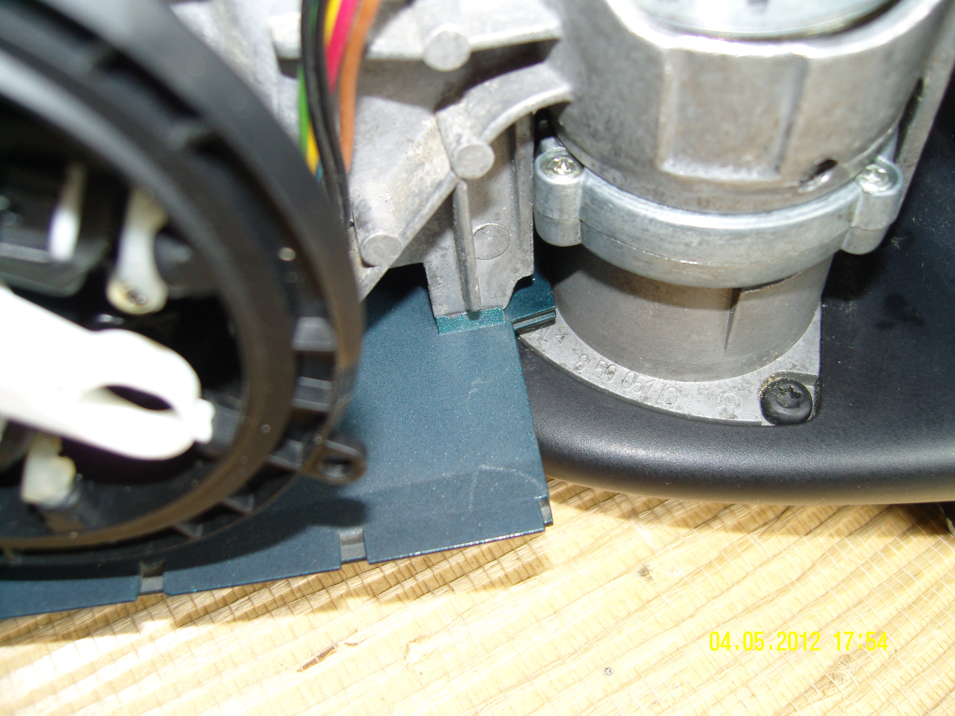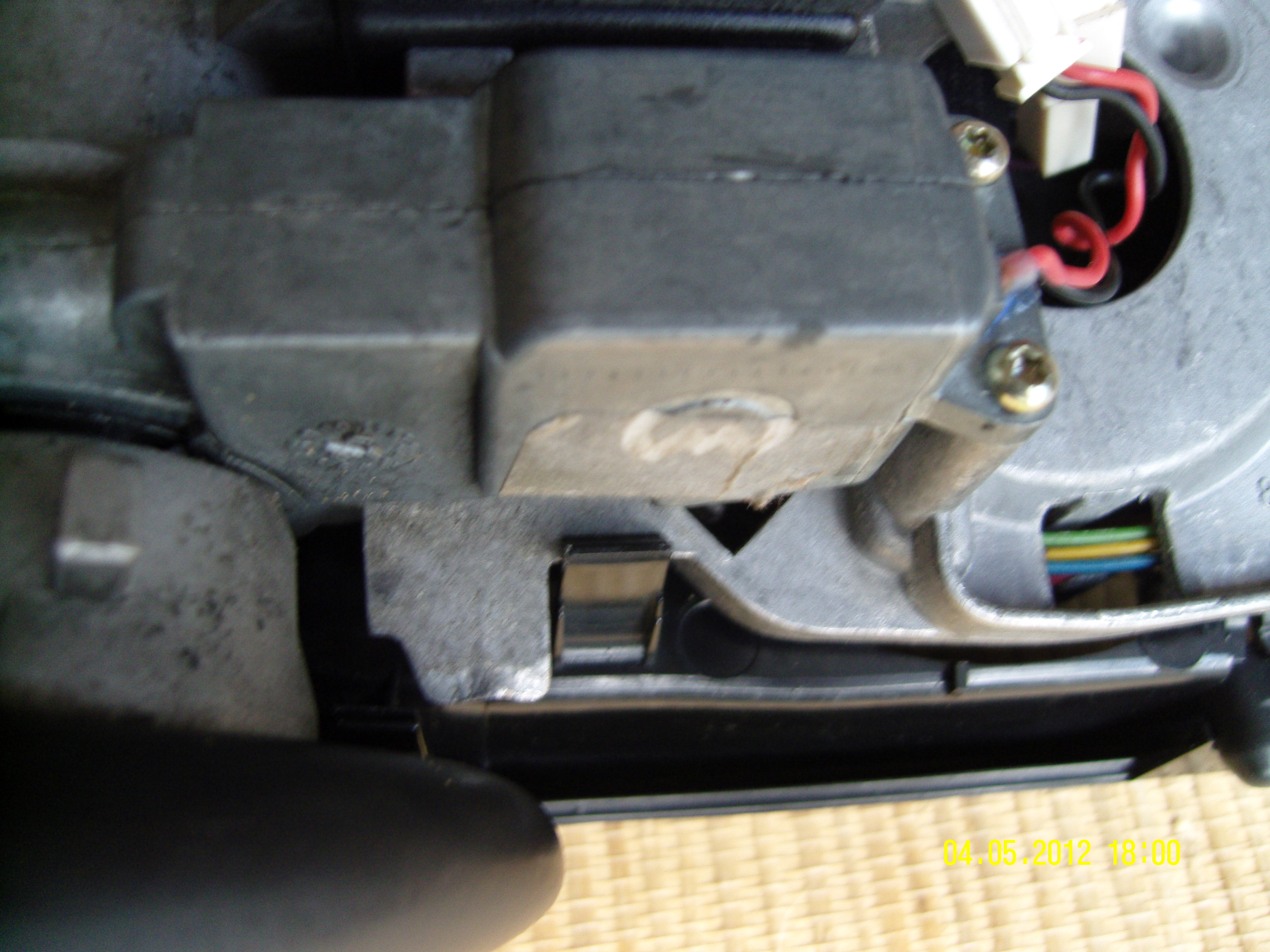 Le même remis en place sur la platine support miroir. On aperçoit l'étanchéité des fils moteur en bleue.