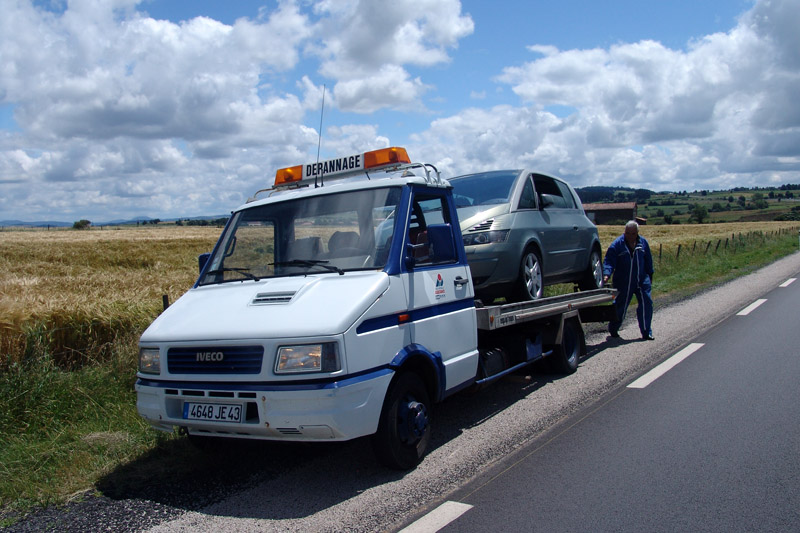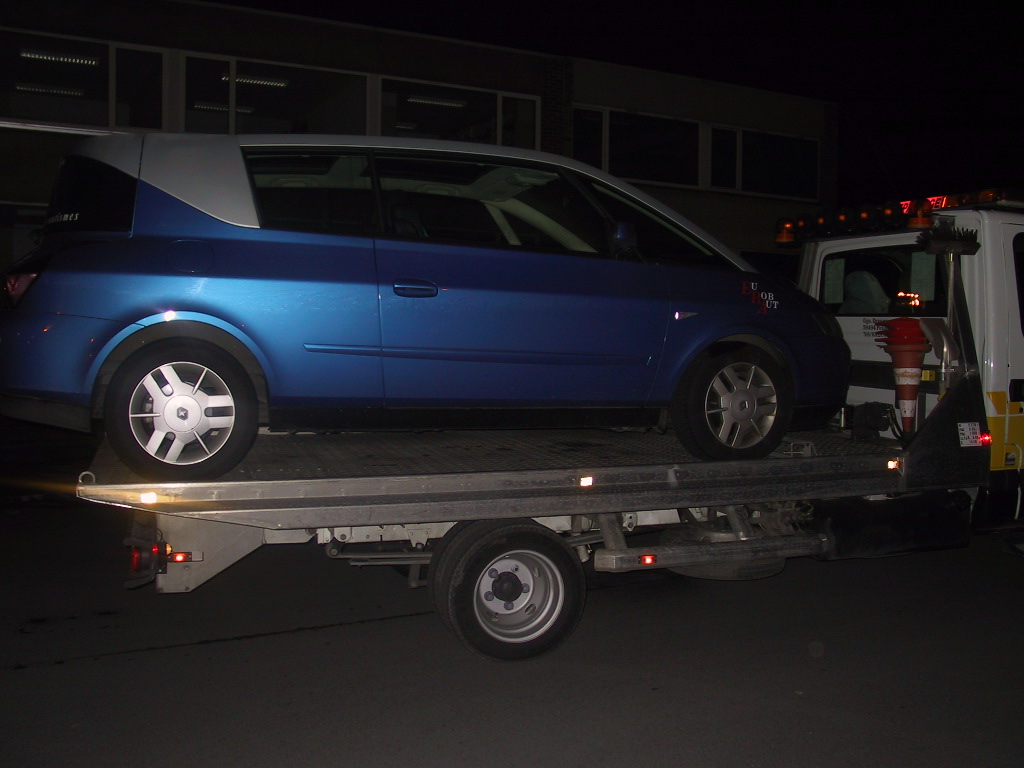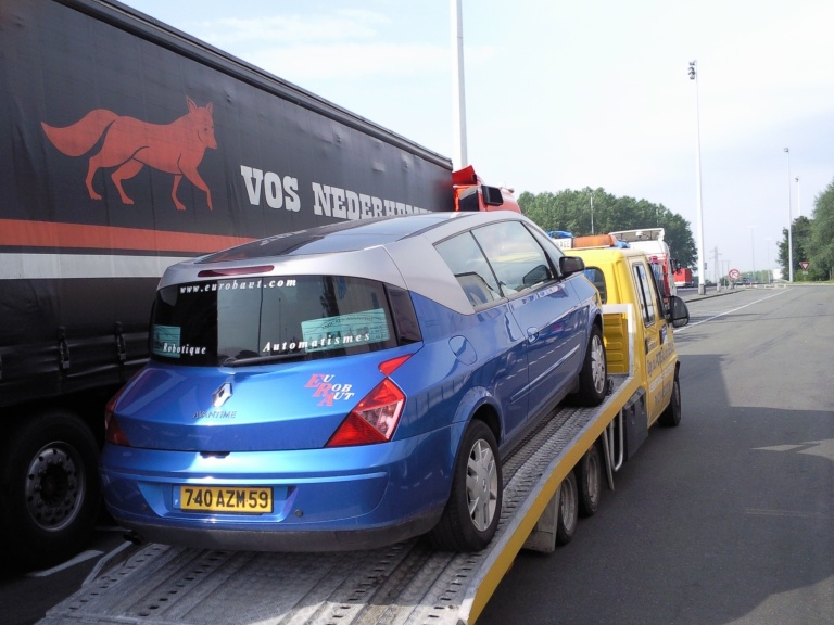 Voici une petite photo du voyage avec la 205 sur plateau.