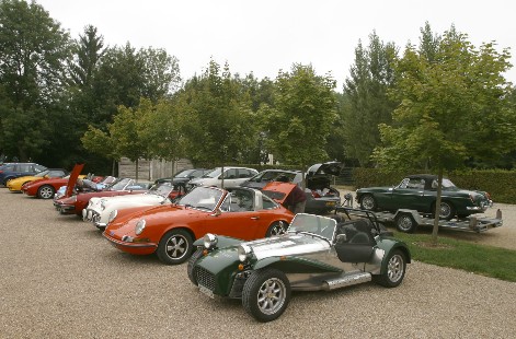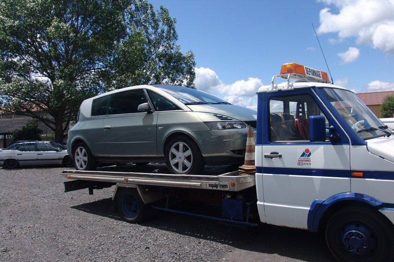 Une Avantime servant de véhicule d'assistance pour une société de location (Historic rental car ) de voiture ancienne...