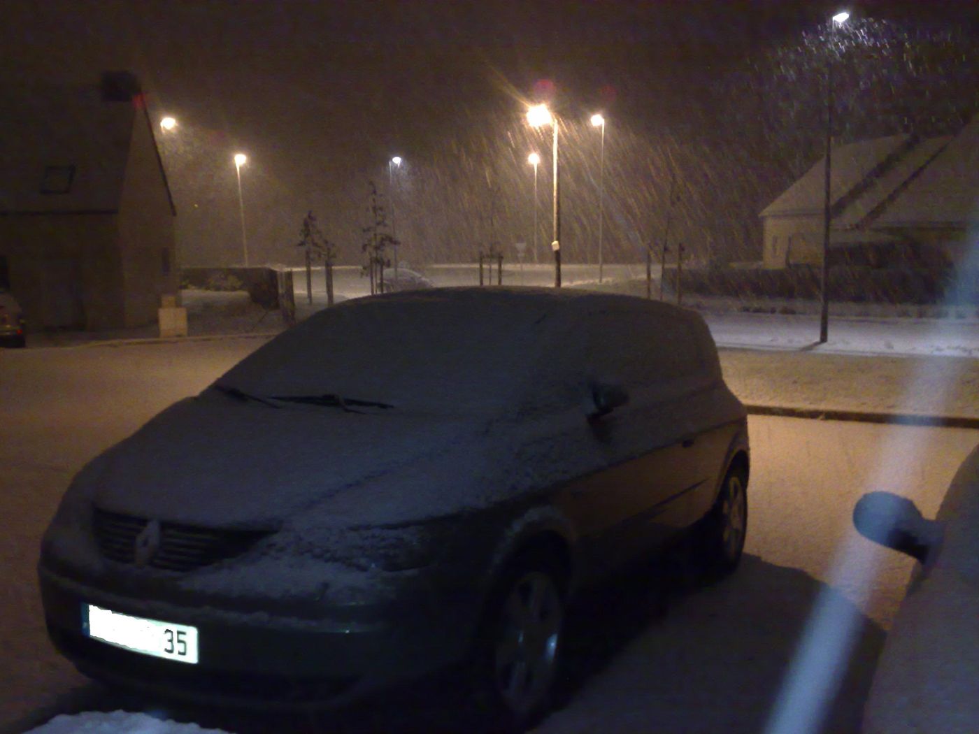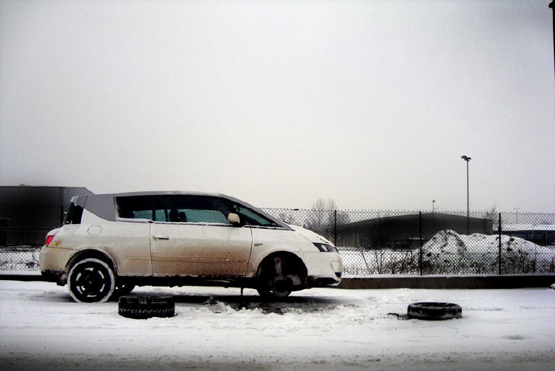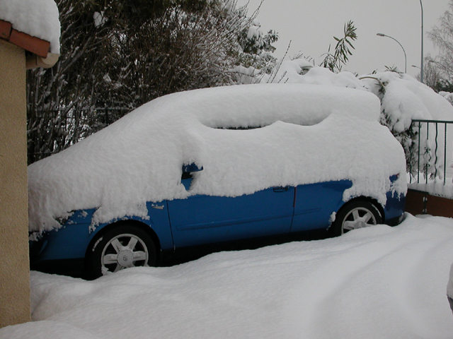 Mon Avantime ayant passé toute la nuit dernière sur le parking du Technocentre, je le retrouve couvert de neige ce soir, normal. J'ouvre la porte conducteur, crrraaaac, aïe mes caoutchoucs. Je rentre, je referme, je vois que la vitre essaie de remonter, n'y arrive pas, je réouvre la porte en catastrophe pour ne pas faire forcer le moteur.