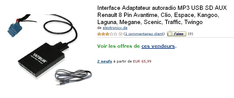 Finalement j'ai acheté un boîtier "connects2", sensiblement moins cher. Il remplit bien son rôle, mais c'est un peu frustrant de ne pas pouvoir changer de piste avec les commandes au volant.