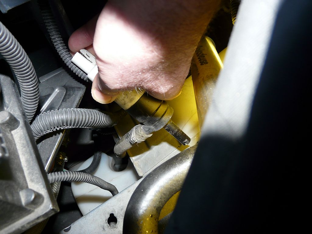 On commence par vider le réservoir (sinon c'est inondation garantie) puis on enlève le connecteur. Passer le bras jusqu'à attraper la pompe avec la main. La tirer en la bougeant (doucement pour ne pas arracher le joint d'étanchéité de son logement)