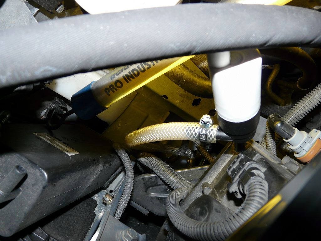 Un peu de savon liquide sur les parties de la pompe à emboiter, un "Serflex" car pas d'outils pour clipser celui d'origine et voilà