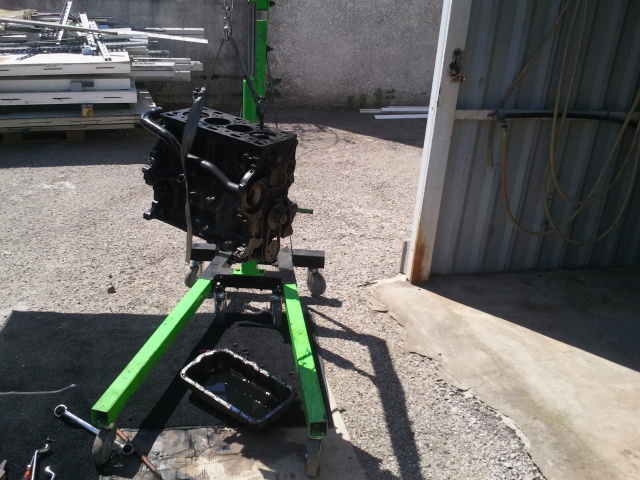 - Dépose du moteur boite, ensuite je vais déculasser pour faire contrôler la culasse, nettoyage du bloc complet, contrôle des usures, cylindres, vilebrequin,volant moteur embrayage, montage de coussinets, distribution , pompe à eau, remontage des injecteurs, du turbo et de la vanne egr qui sont déjà neufs, contrôle du collecteur d'admission. remontage du moteur boite sur la voiture.