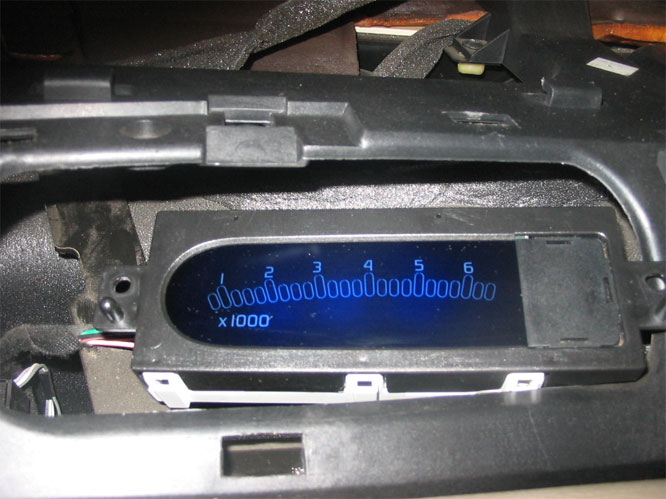 le principe est de remplacé le filtre couleur orange derriere le LCD du compte tour par un filtre blanc,et de remplacer les 3 lampes par des leds bleu.