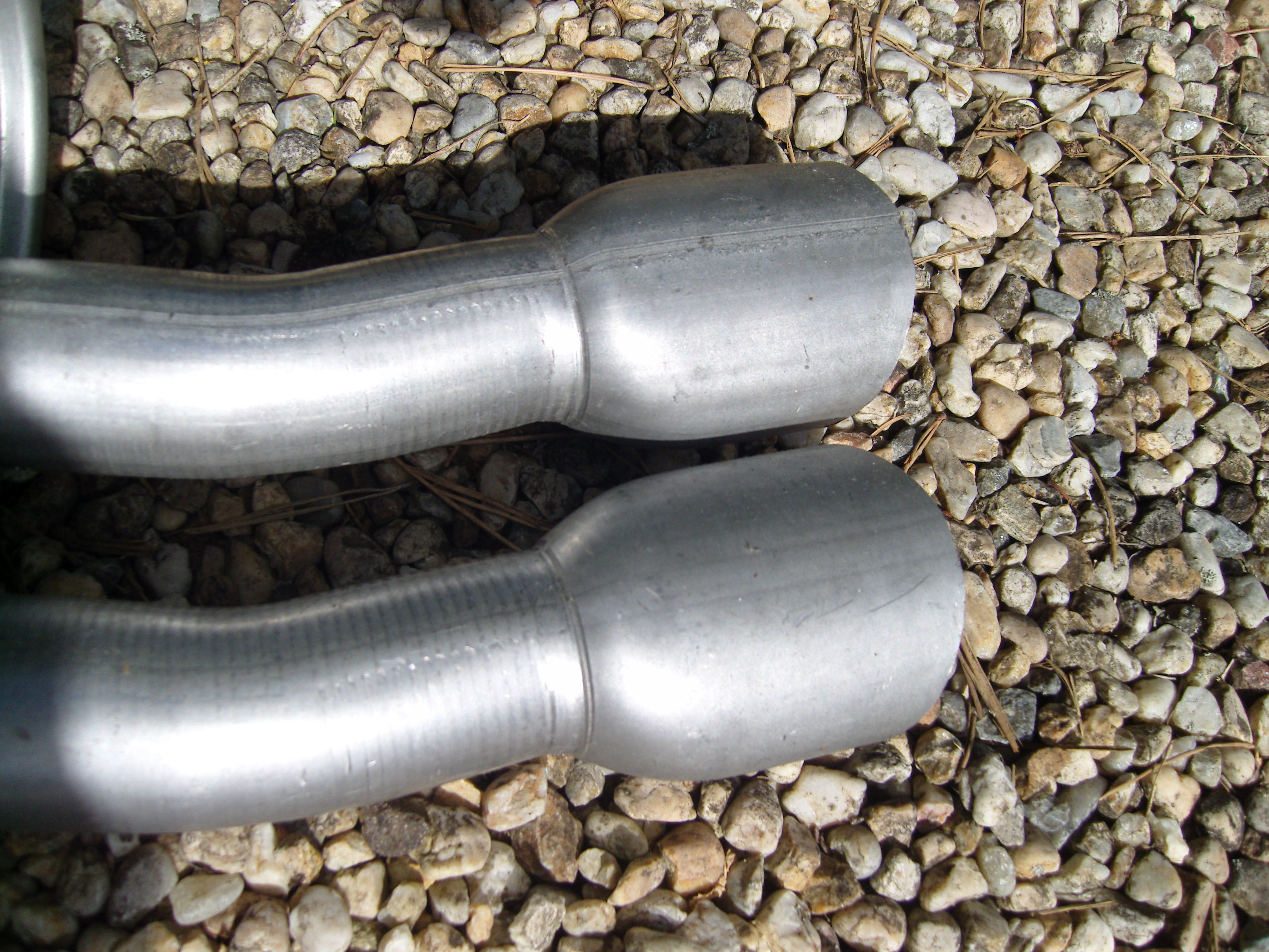 Si l'on ne souhaite pas avoir les deux sorties qui dépassent de la jupe du parechoc, il est possible de recouper le tube de l'intermédiaire, la zone d’emmanchement dans la partie expansée/fendue du silencieux arrière, de plusieurs centimètres (2 à 5 environ et selon le montage), j'ai conserver cette sur-longueur, pour couper derrière l'expansion et emboiter des embouts inox,