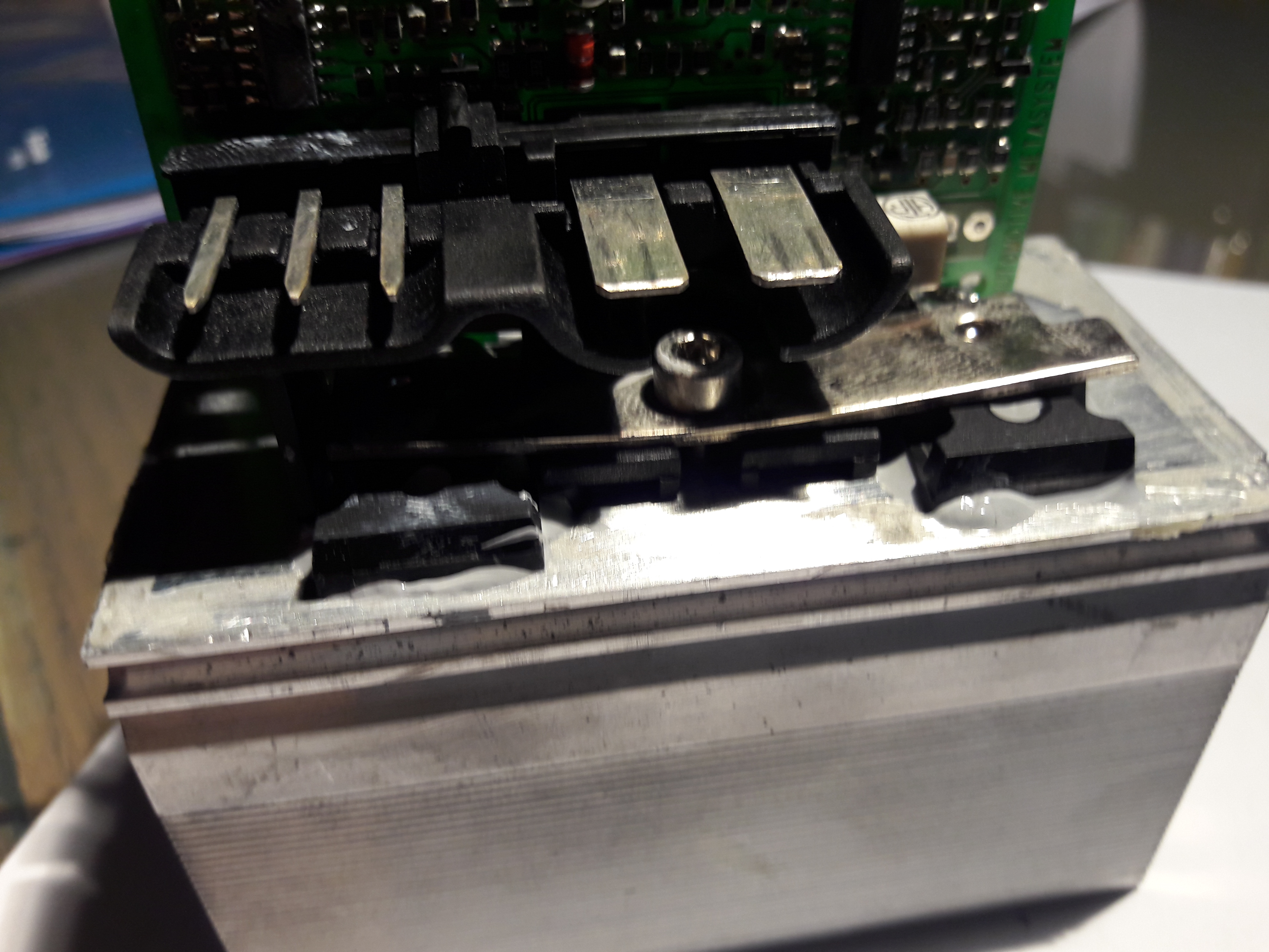 on dévisse la vis qui tient les transistors et on décolle le tout du radiateur avec précaution .