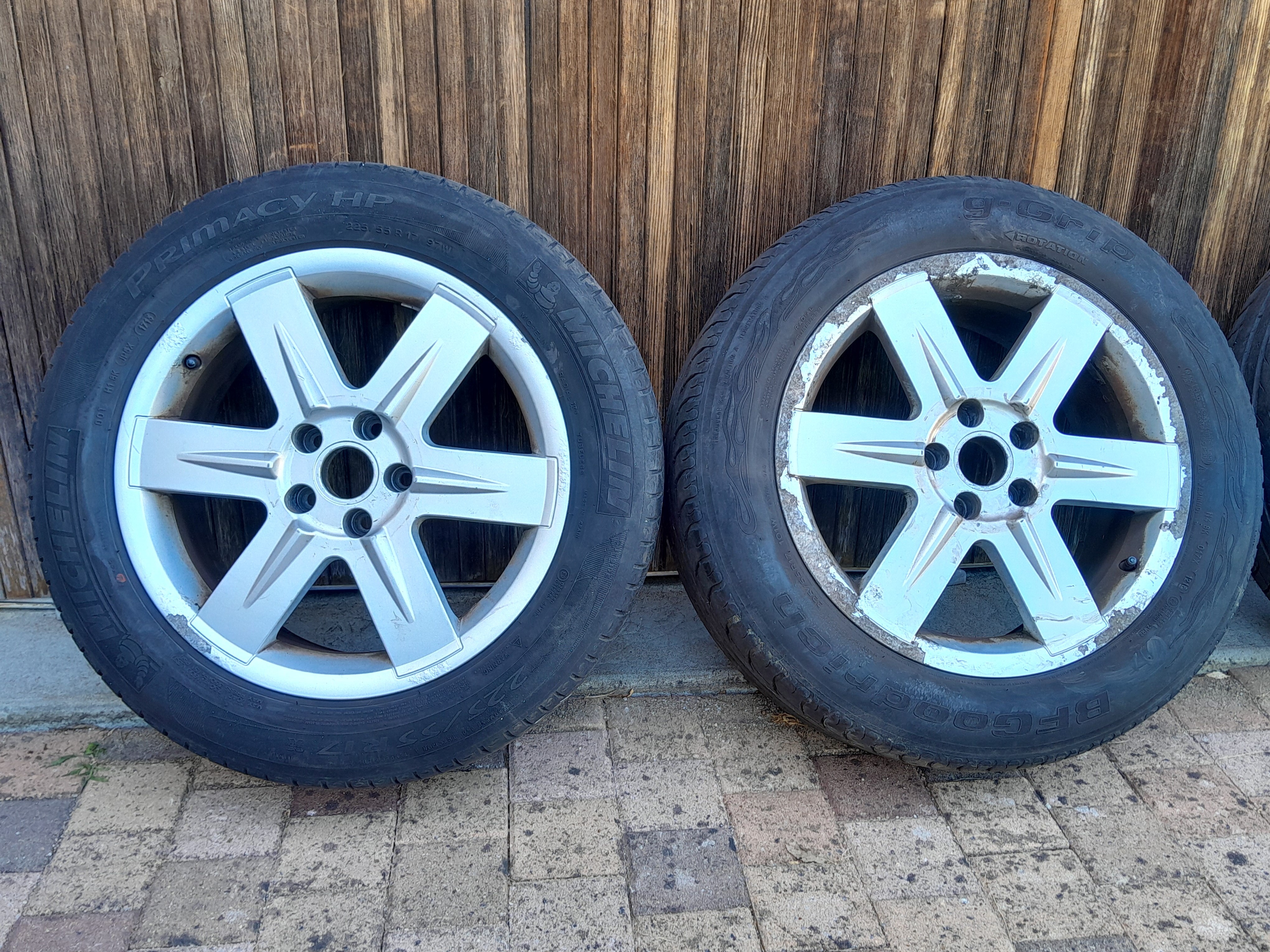 225/55 ZR17 qui sont sur les jantes, mais inutilisables, étant trop usés
