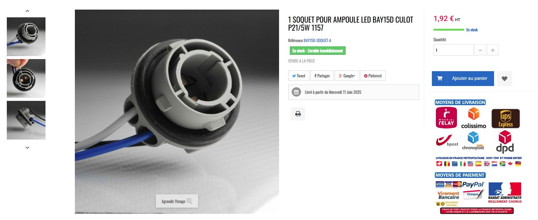 Je viens de trouver ça sur AliExpress : 1,88€ | Douille d'ampoule BAY15D P21/5W 12V, 2 pièces, adaptateur, connecteur de Base pour feu stop, accessoires de voiture en plastique, 1156 1157