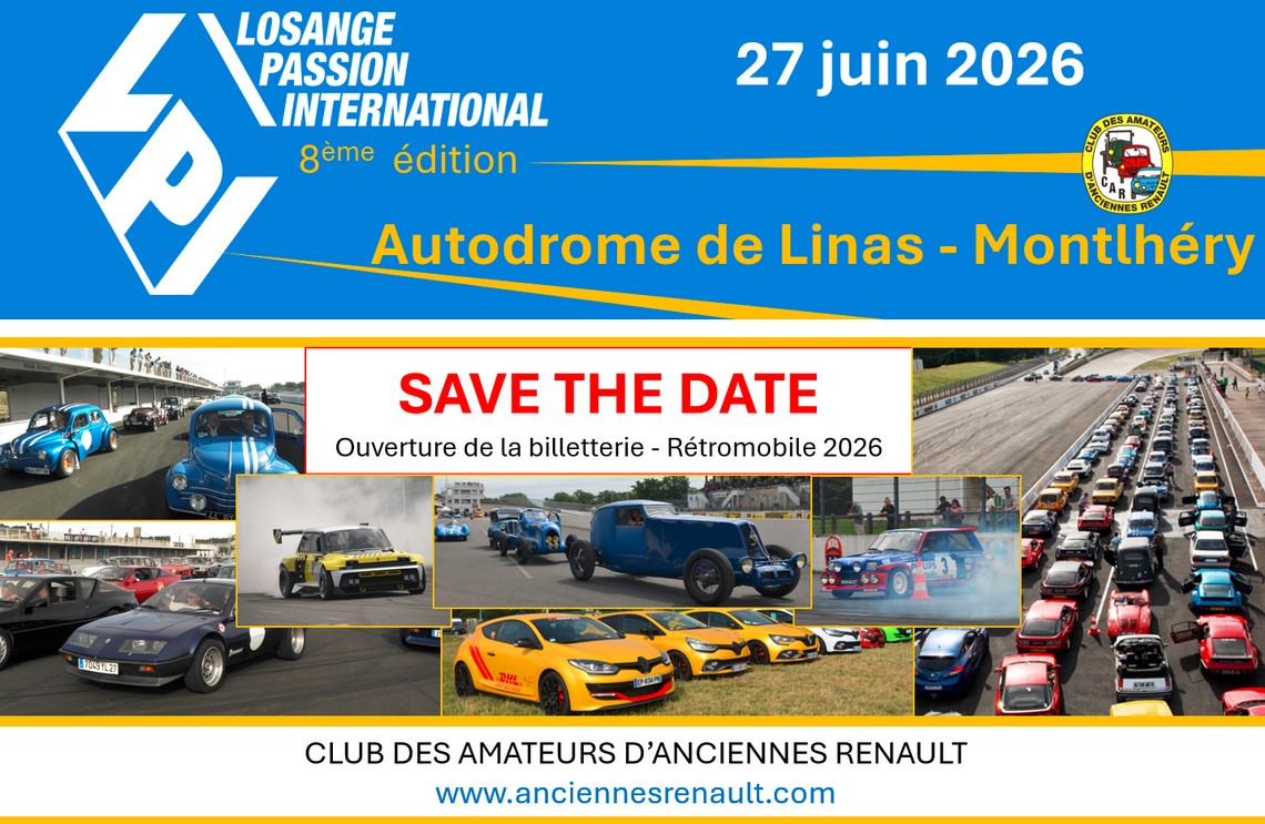 Organisé par le CAR-IDF (Club des Amateurs d’anciennes Renault) , Losange Passion International se positionne comme un rendez-vous incontournable pour tous les passionnés d’anciennes Renault et Alpine. Cette année, la huitième édition promet une nouvelle fois des surprises exceptionnelles, à ne manquer sous aucun prétexte.
